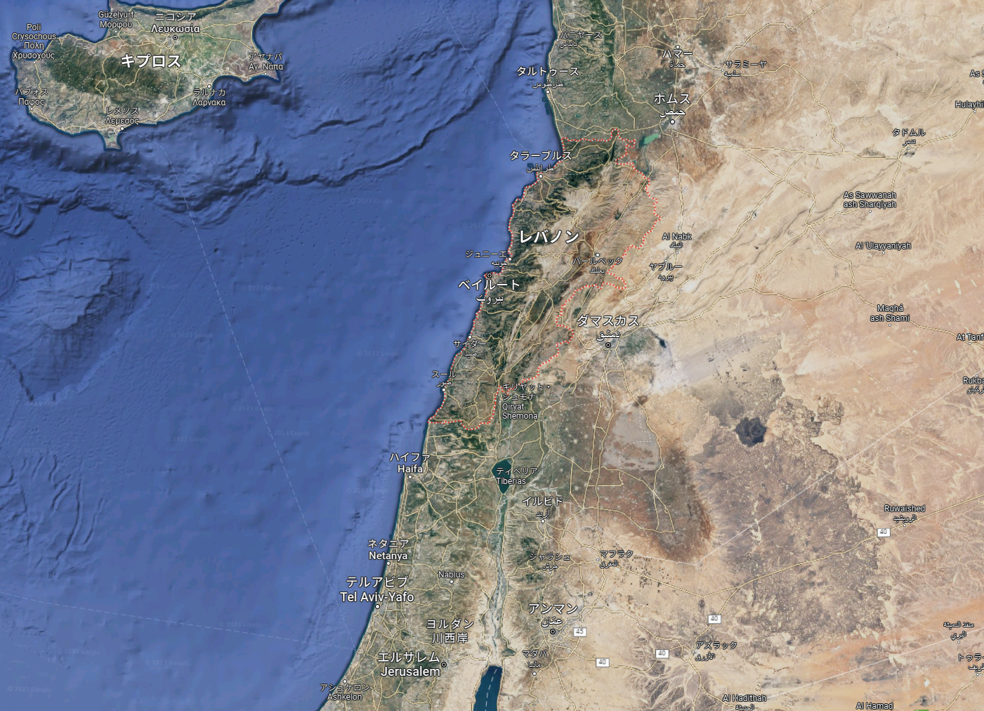 西側は地中海に面し、陸地側の大半部分をシリアに囲まれた大変な国!