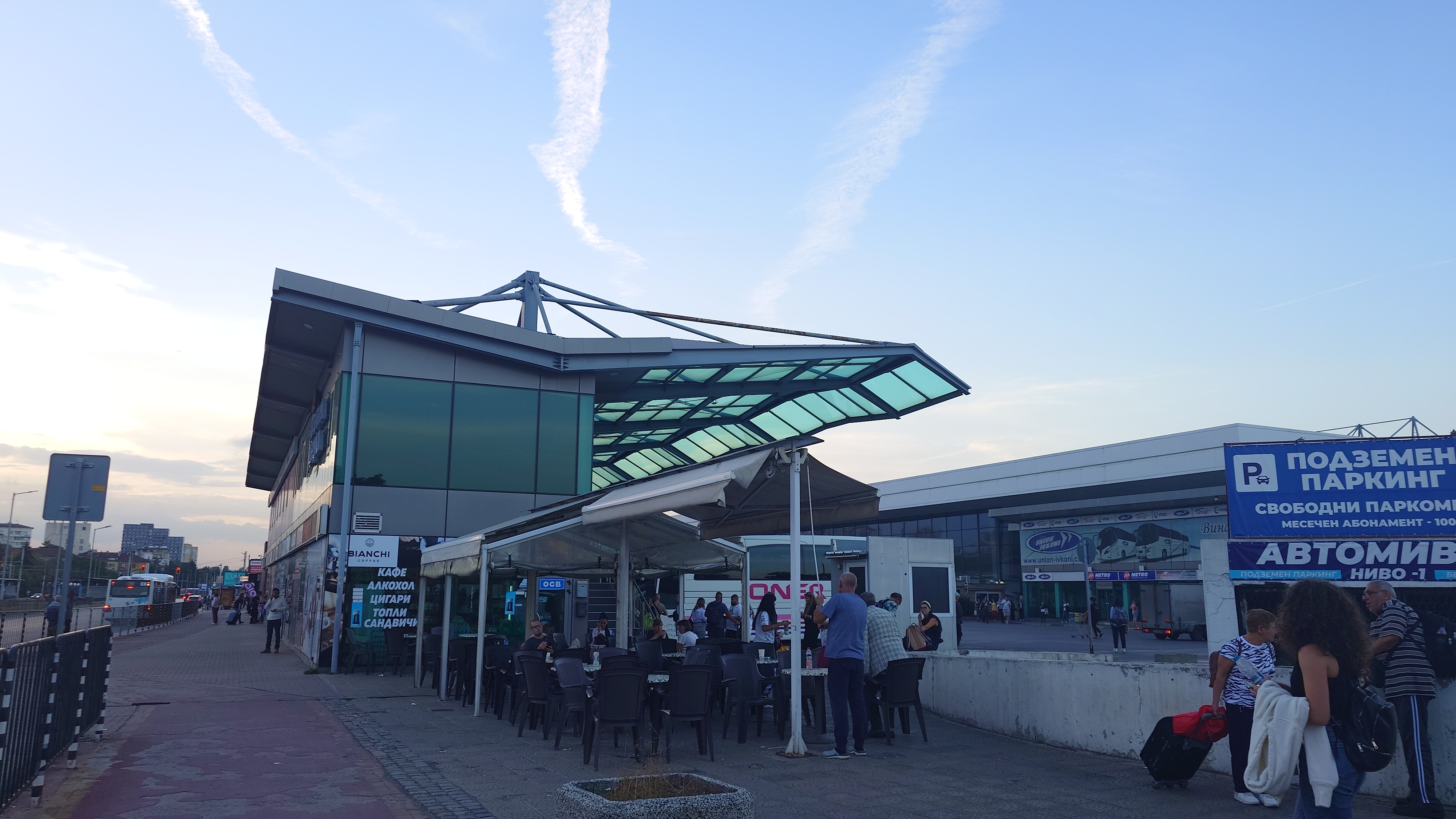 ソフィア駅前の通りを眺めながら、時間をつぶす。