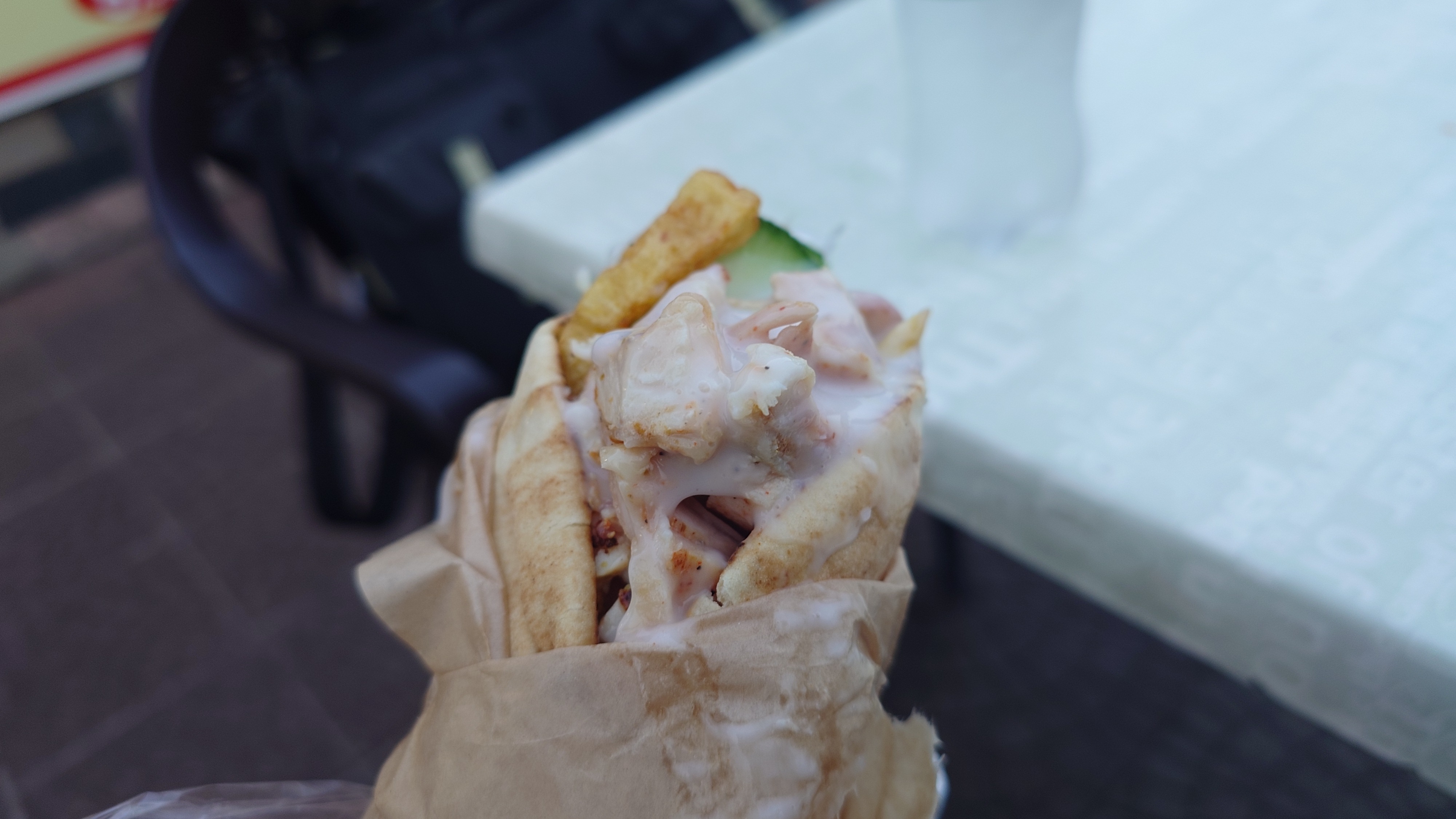 何かと思ったらトルコ料理のドネルケバブか。レバノンからこの後行くギリシャあたりまで広く食べられているポピュラーな料理だ。
