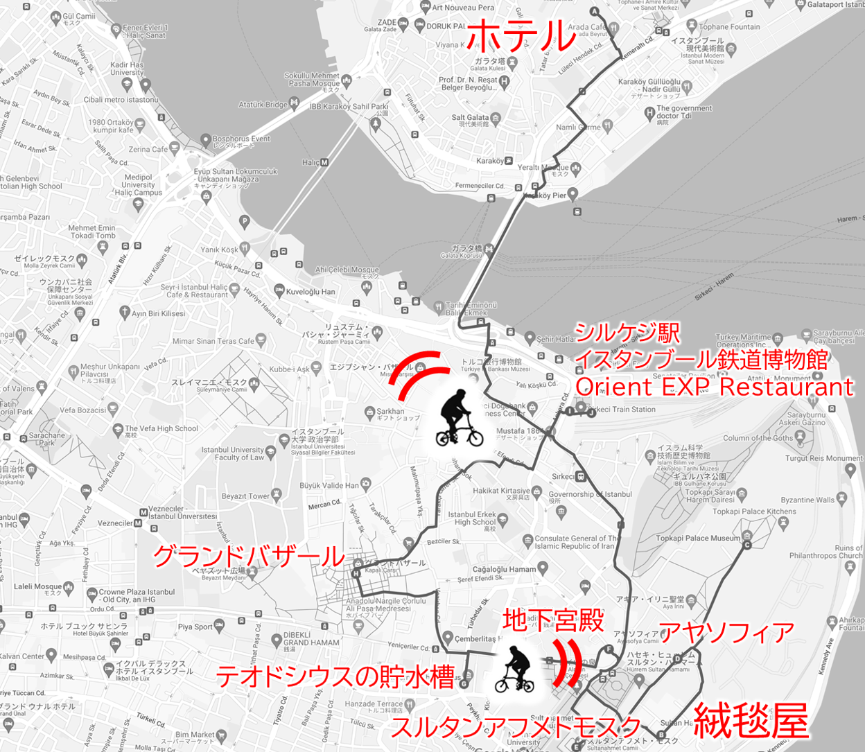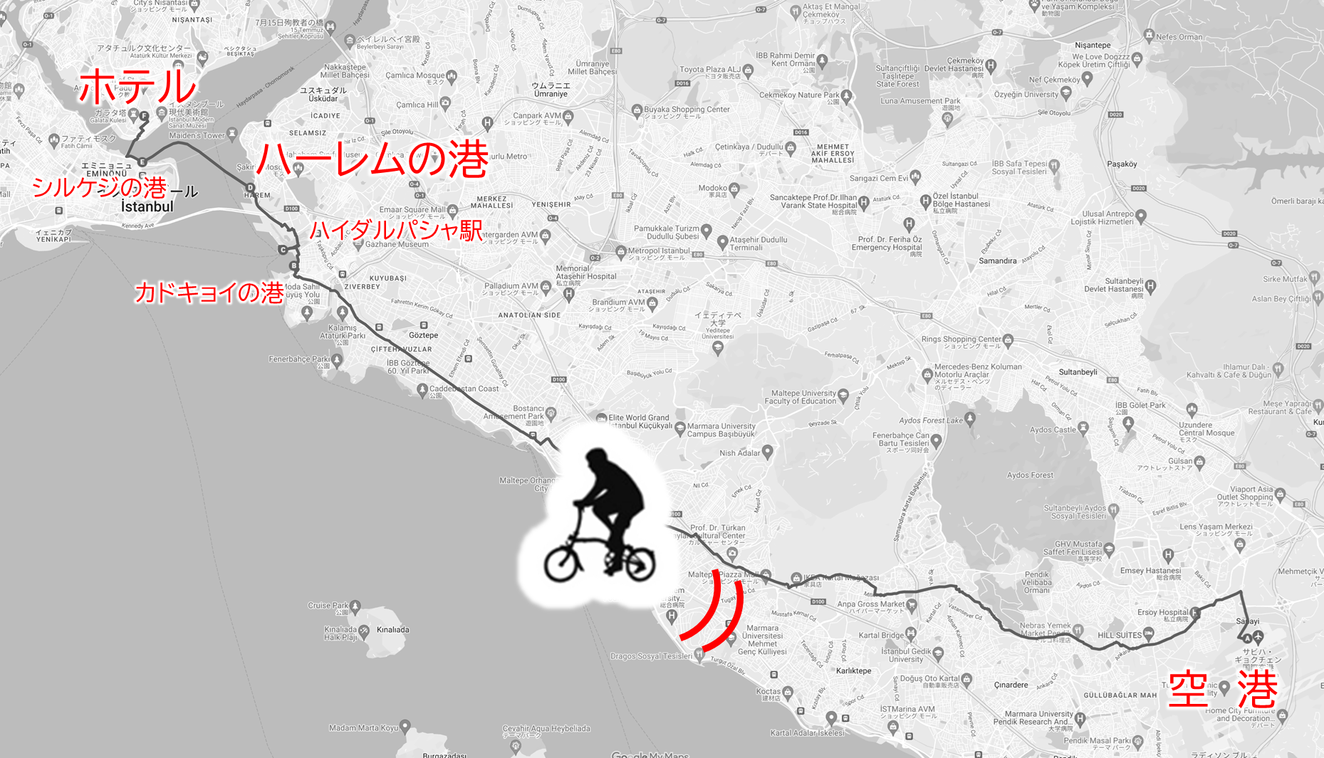 すなわち「アジア側からBROMPTONくんと渡し舟でボスポラス海峡を渡りヨーロッパの地を踏む(*v.v)。。」というロマンを達成するためだ。